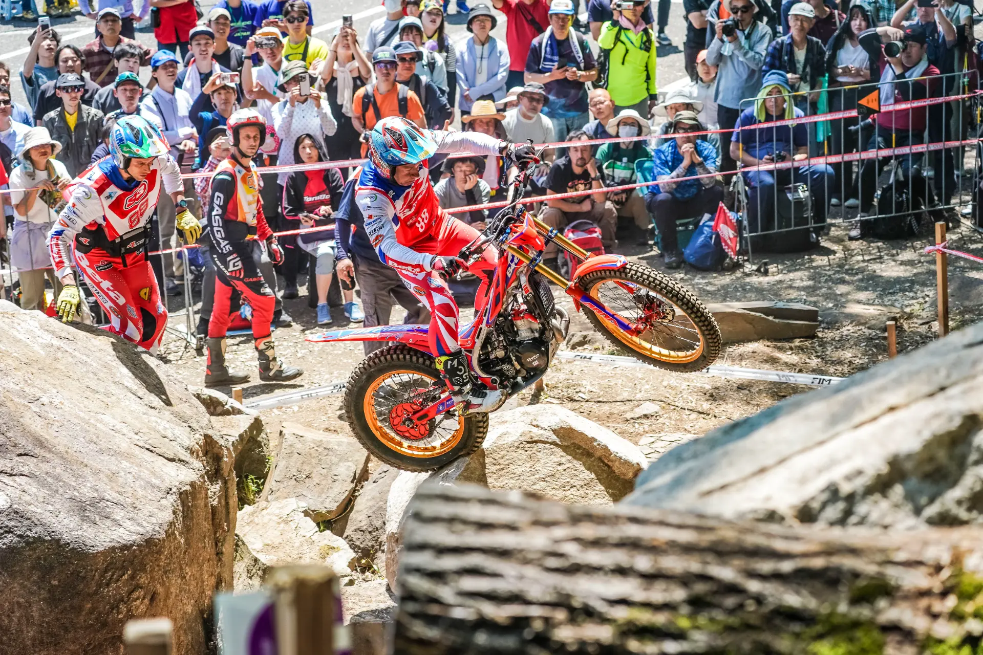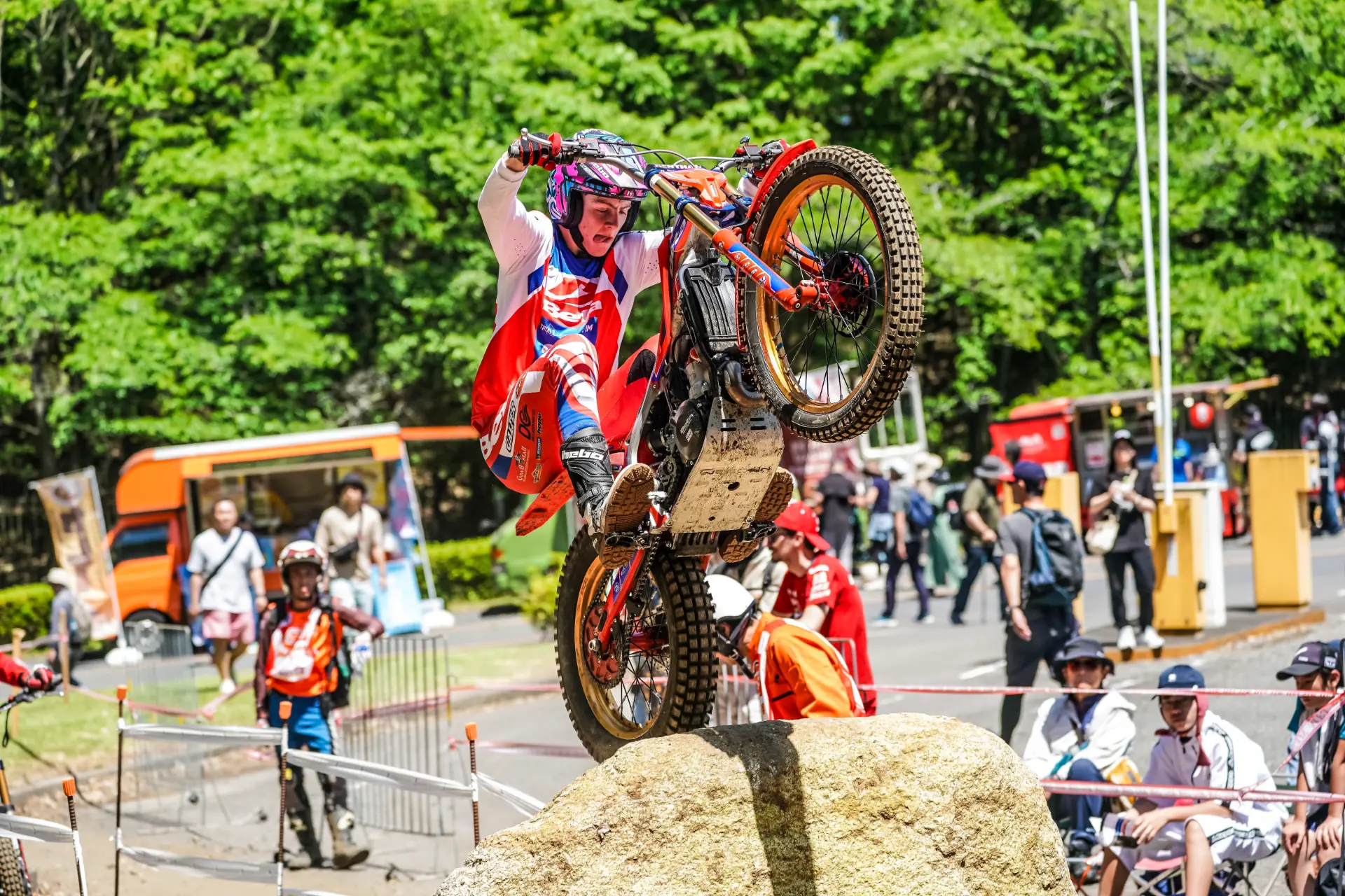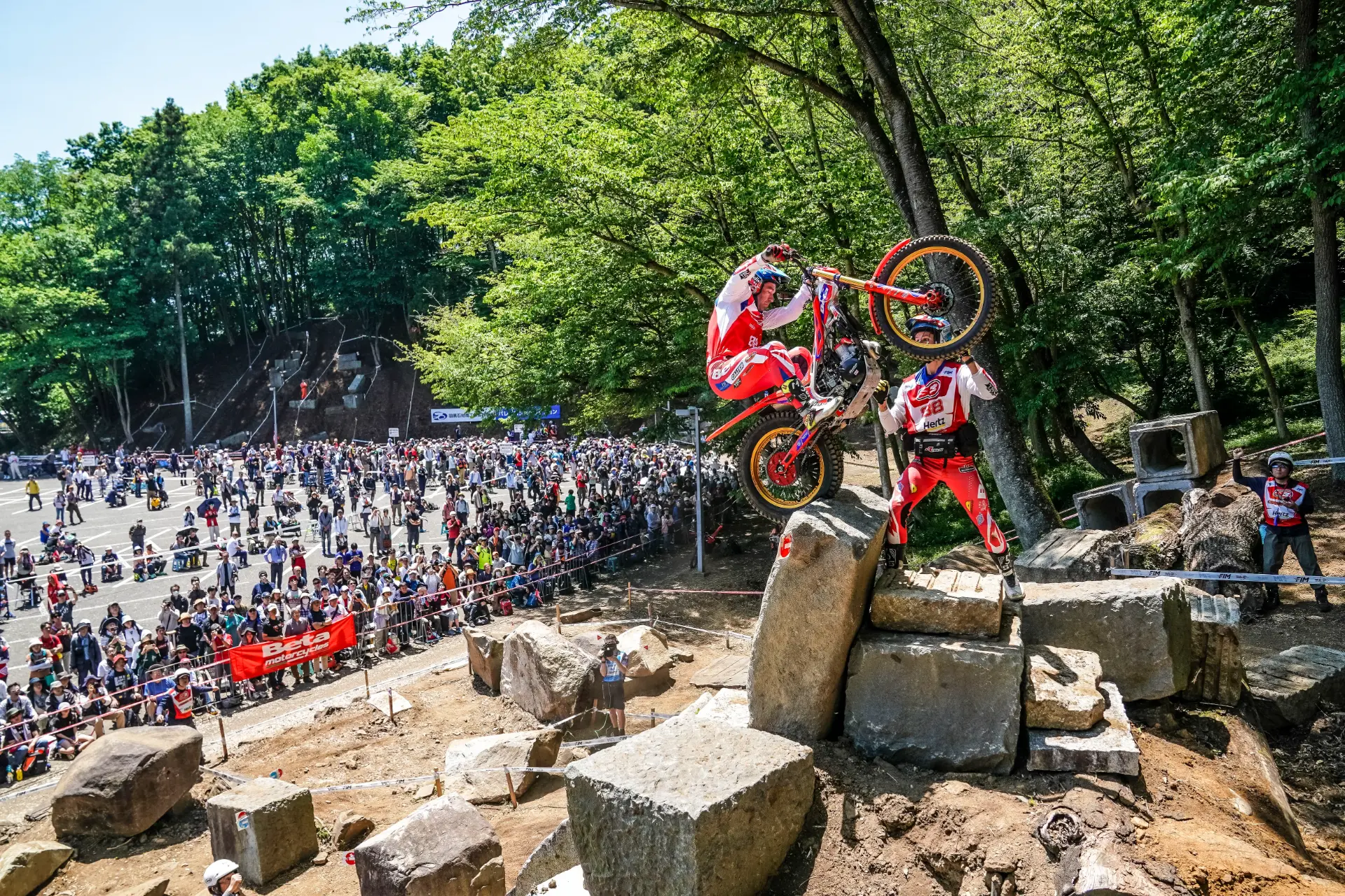 El TrialGP de Japón es siempre una cita muy esperada por los aficionados, y también una de las más vistosas y singulares para los pilotos y equipos. Sus zonas, con sus empinadas subidas boscosas y imponentes rocas de granito, siempre suponen una dura prueba para los participantes.