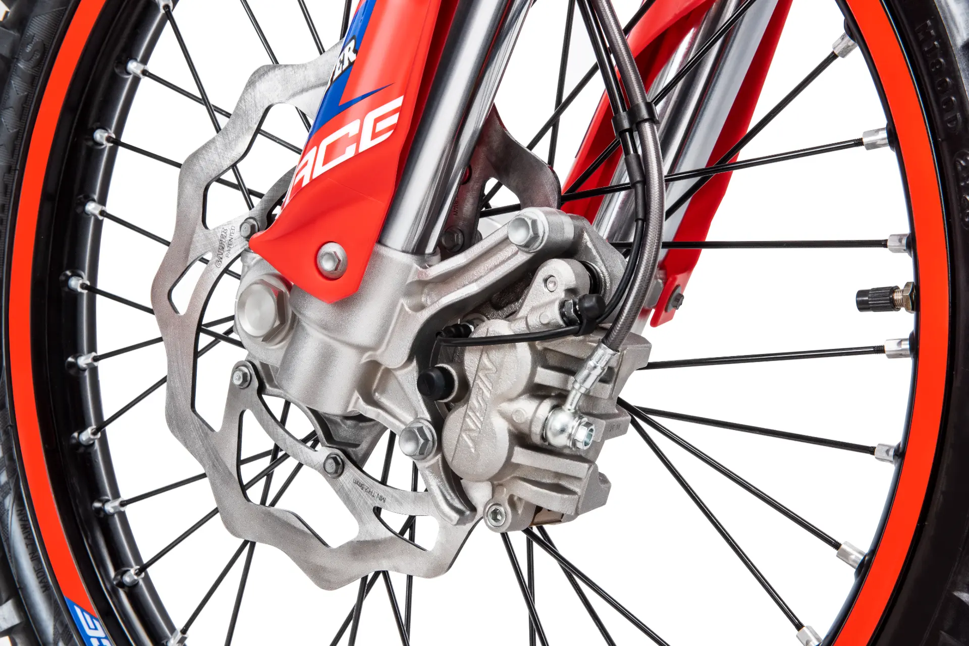 – Pinza de freno delantera. Una pinza Nissin hace su aparición en las nuevas RACE, más ligera y con mejores prestaciones que su predecesora, ayudando a mejorar la manejabilidad de la moto a la vez que mantiene la potencia de frenado, la progresión y la modulabilidad.