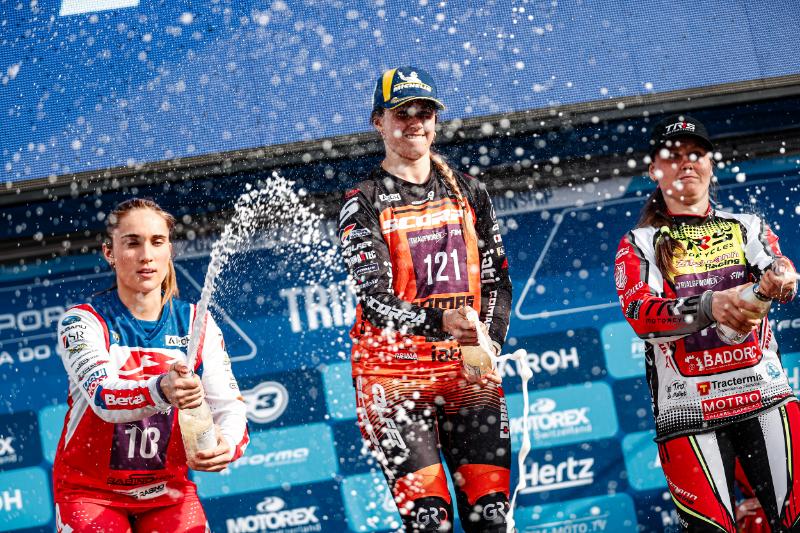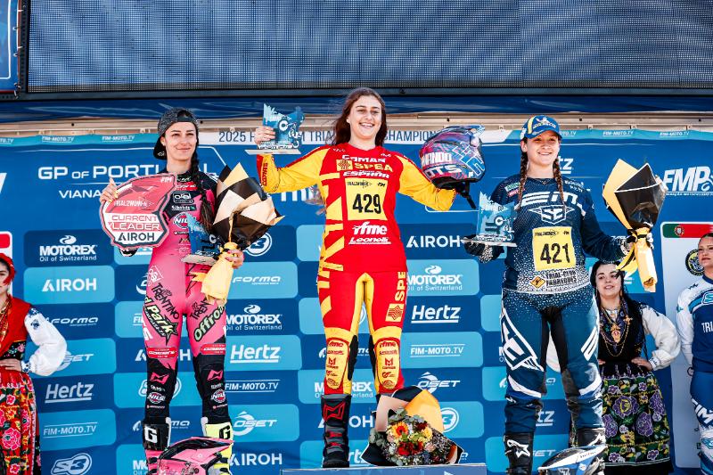 La piloto de Beta Trueba Daniela Hernando, líder de la clase magna femenina del CET 2025, tras subir al podio scratch siete días antes en tierras malagueñas, conquistó su primera victoria mundialista absoluta después de ser la mejor el domingo en Trial2 Women. En un fin de semana claramente de menos a más, la cántabra se adjudicó las segundas series de cada jornada y terminó segunda en la inicial del domingo, lo que le valió su primer triunfo scratch en la división de plata. En la carrera inicial del TrialGP Portugal 2025, concluyó décima.