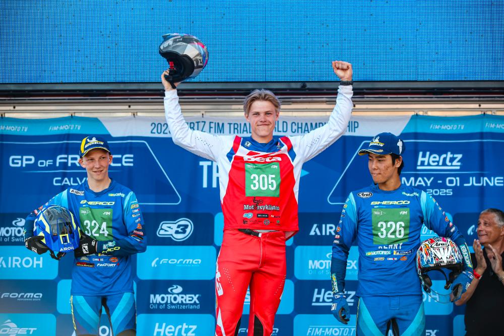 Matteo Grattarola, tercer clasificado en tres de las cuatro mangas del fin de semana en TrialGP; Harry Hemingway, primero y segundo en el primer y cuarto recorrido, respectivamente, para Trial2; y Jonas Jorgensen, primero y segundo en las combinadas de Trial3, también despuntan en la cita celebrada este fin de semana en la isla francesa.