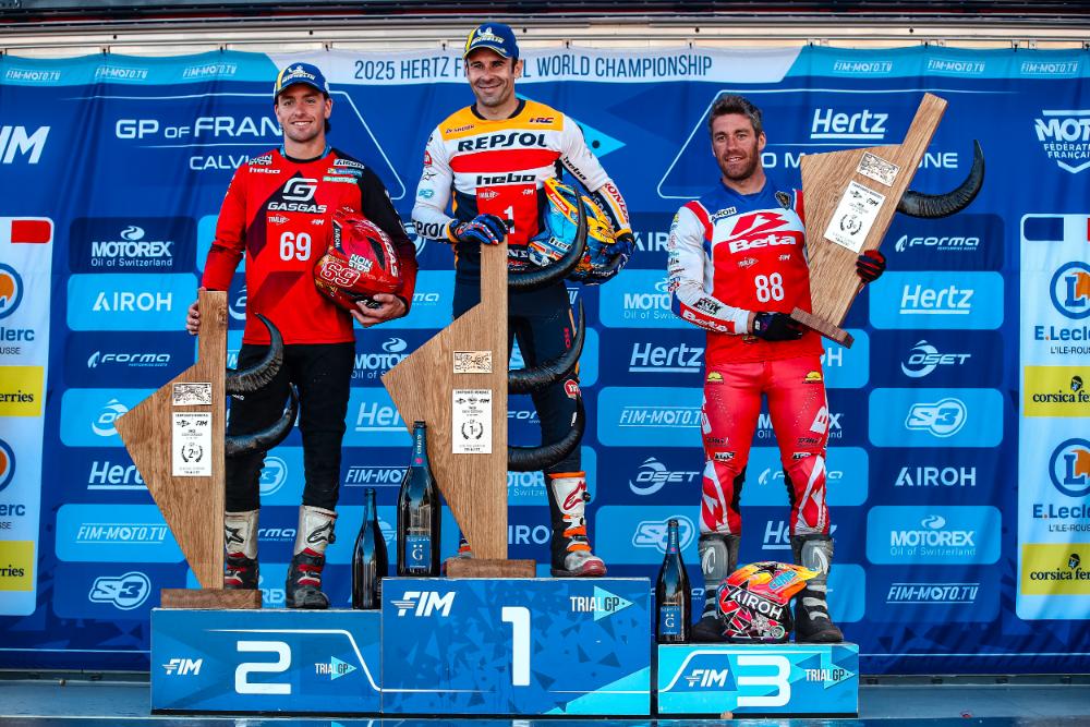 Gerard Trueba, estandarte de Beta Trueba en Córcega, sube al podio en la cuarta y última carrera puntuable para la división de plata masculina del Campeonato del Mundo de TrialGP 2025 disputada en la costera y montañosa Calvi.