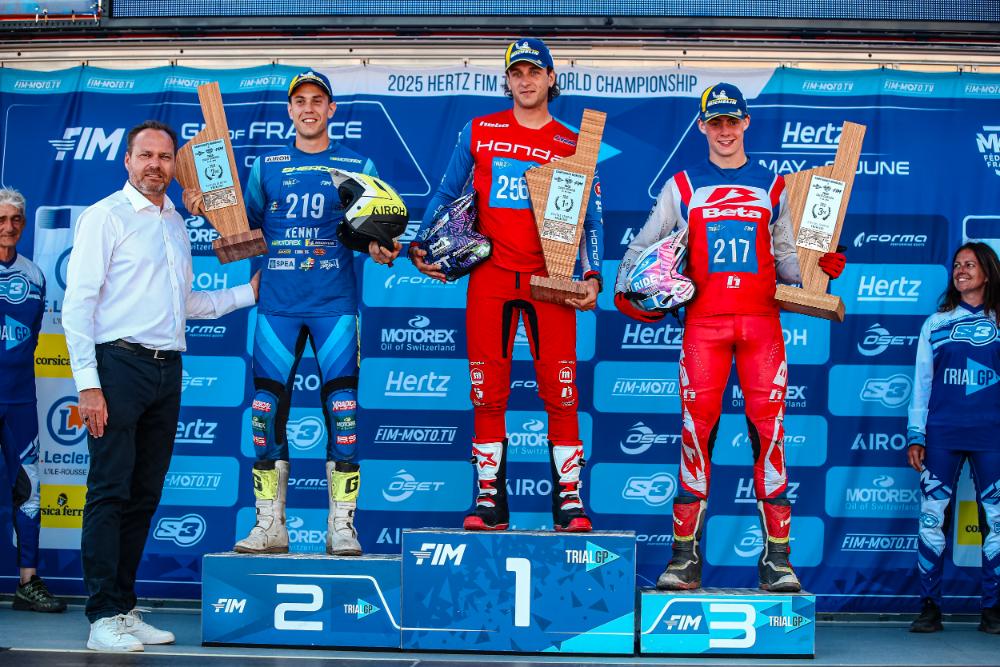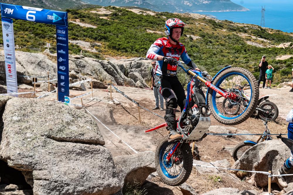 Gerard Trueba, estandarte de Beta Trueba en Córcega, sube al podio en la cuarta y última carrera puntuable para la división de plata masculina del Campeonato del Mundo de TrialGP 2025 disputada en la costera y montañosa Calvi.