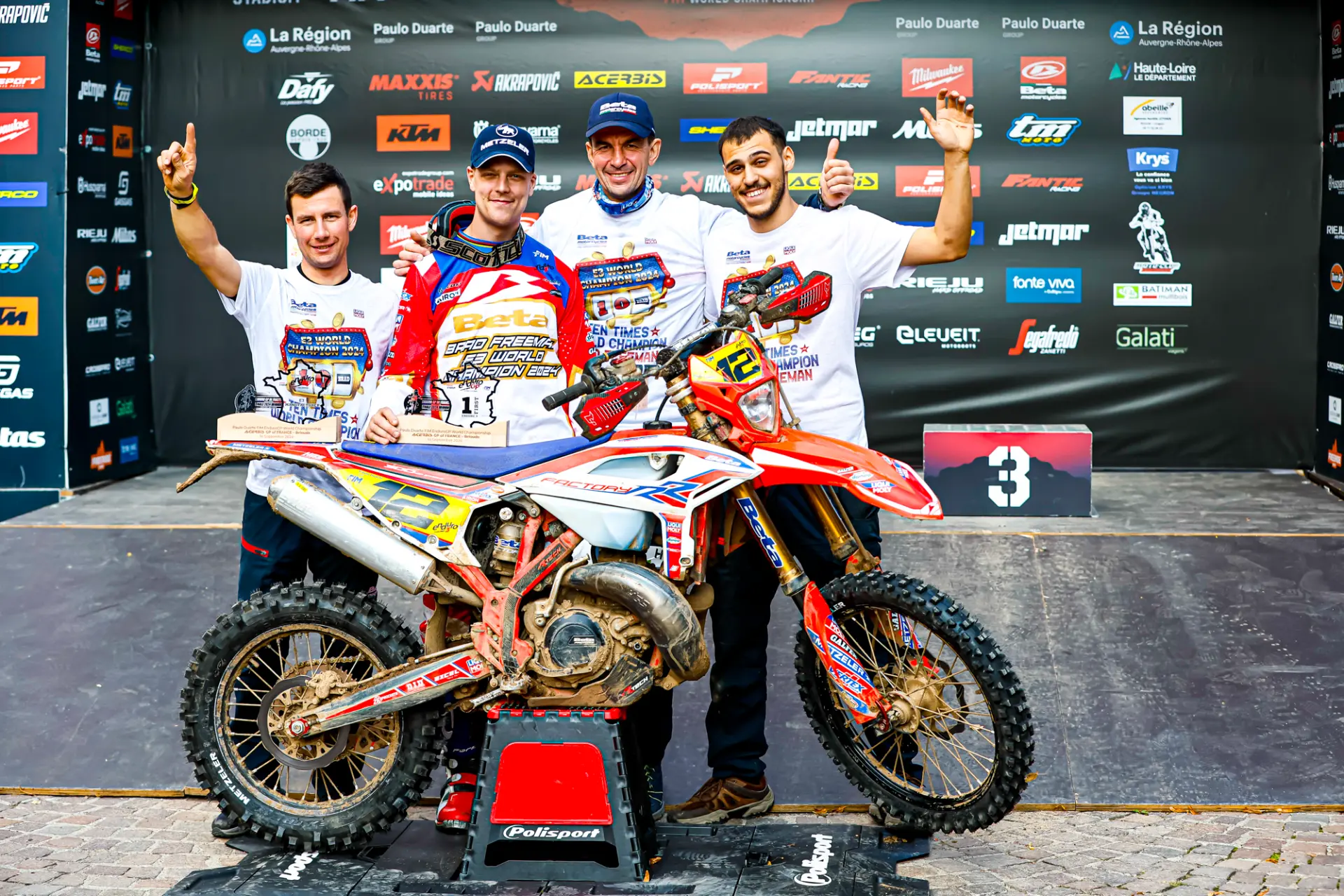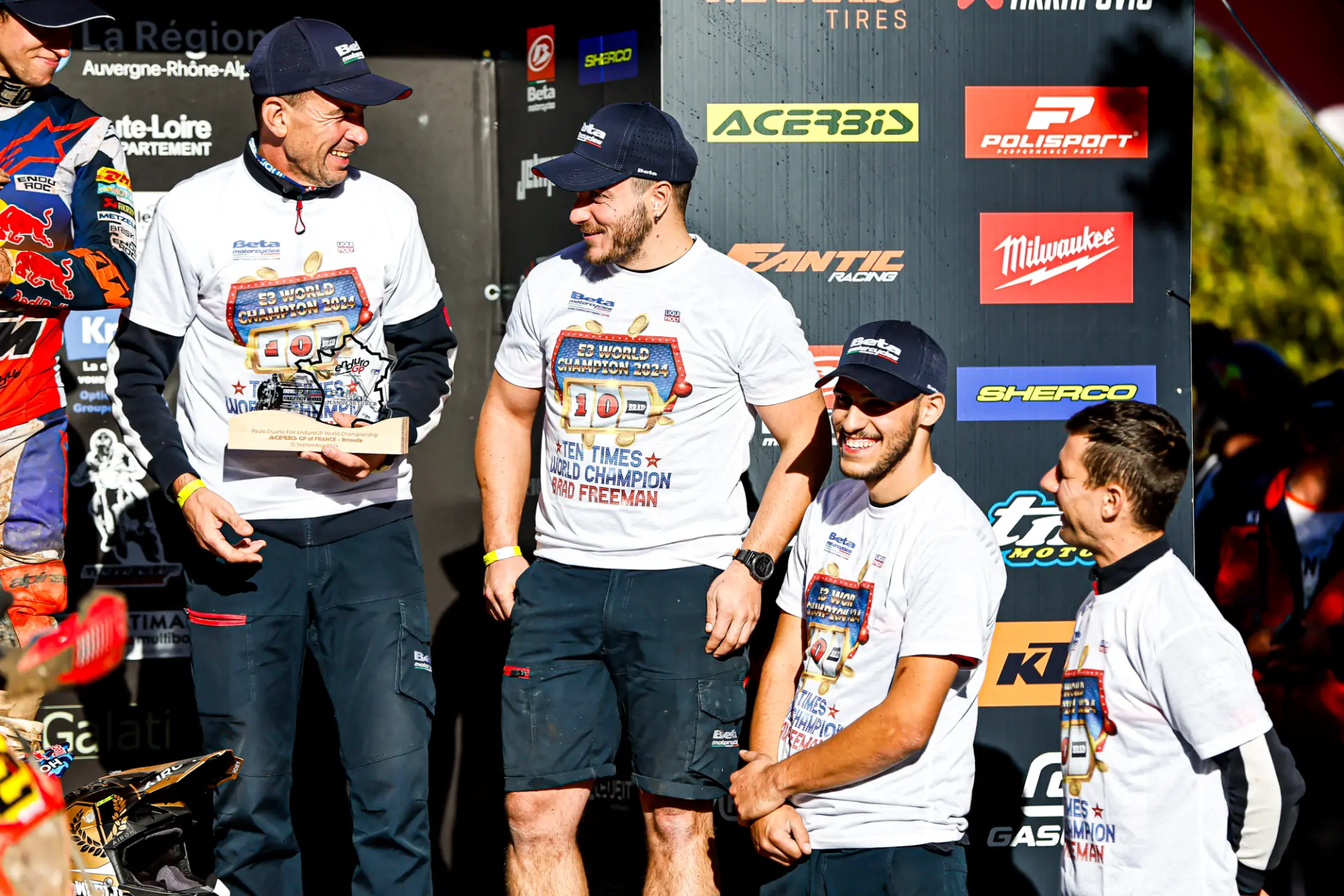 Brad Freeman, ganador de la categoría Enduro 3 en ambas jornadas, así como de EnduroGP el domingo, sumó su décimo título mundial en diez años en E3 con Betamotor. Nathan Watson, por su parte, cerró su primera temporada con la firma toscana completando el podio final de campeonato en E2.